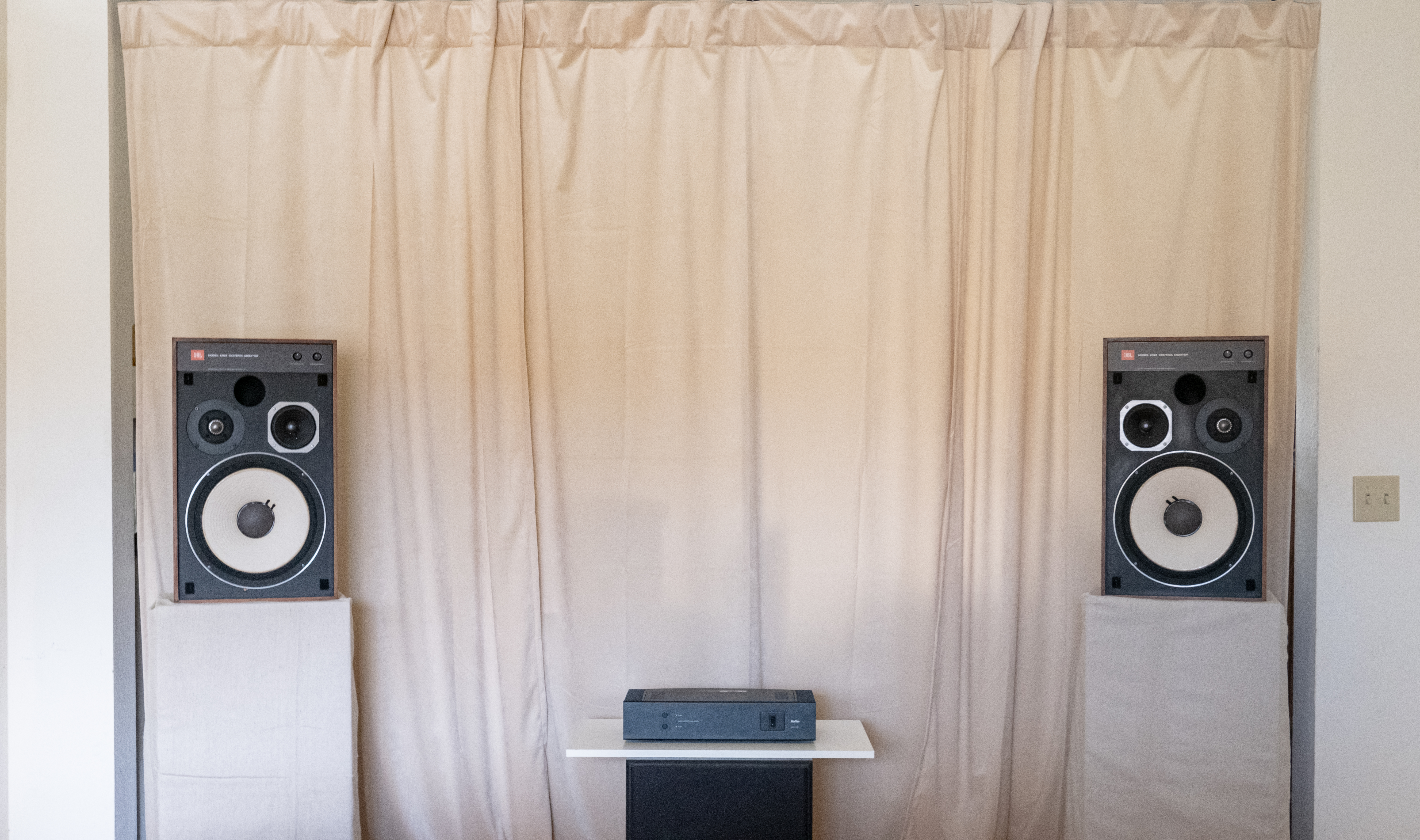 Though I wanted attendees to focus on the listening experience more than the setup involved, setup was still quite involved. I had my JBL 4312As as the main pair of speakers. Its nominal frequency response goes down to 45Hz, so I brought out my Blue Sky Sub 12 to take over the low end, crossed over at 80Hz.