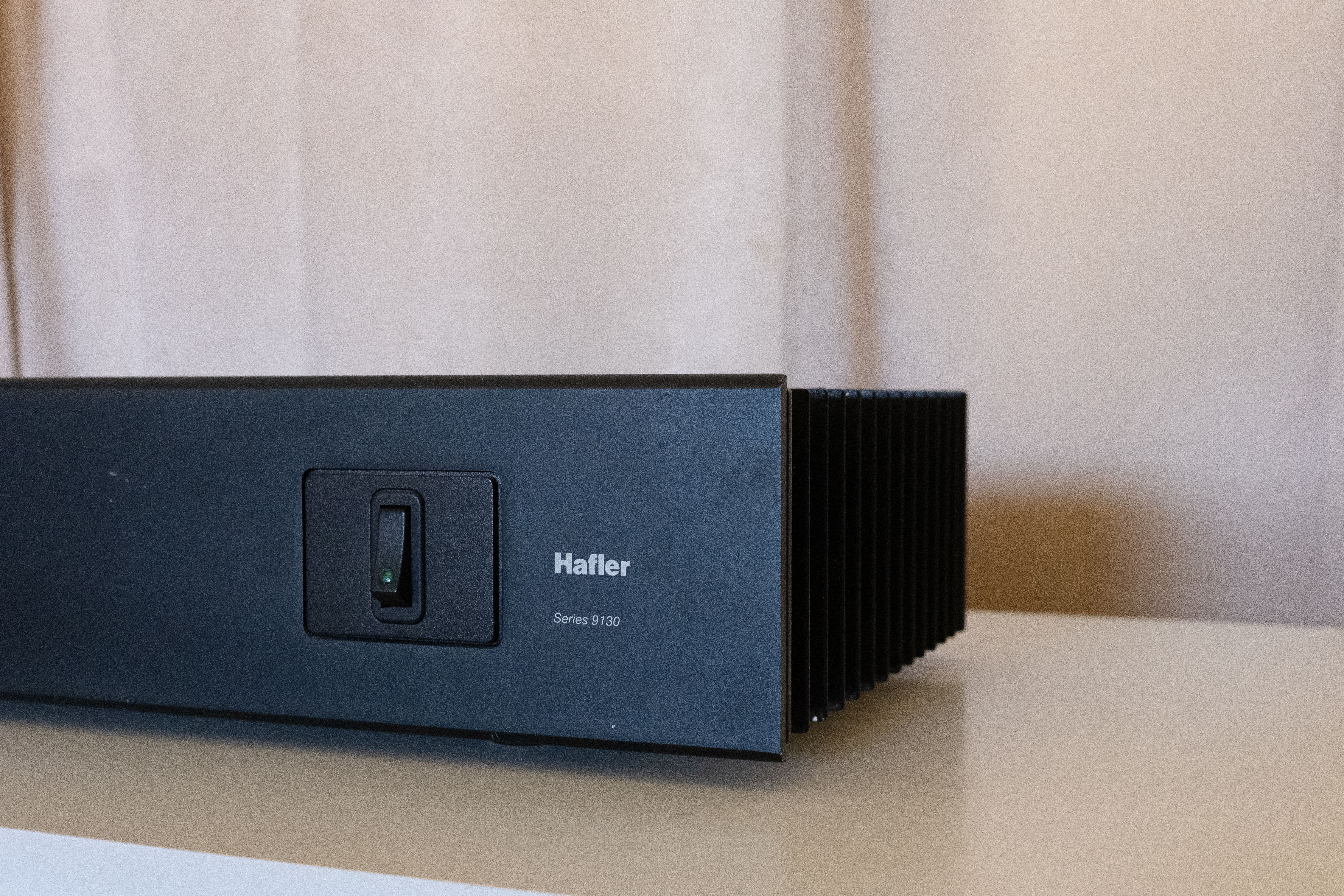 Any amp with a decent power rating would have done fine for listening at regular volumes, but given that this event had an aesthetically driven component to it, I chose an amp with an enjoyable physical design. I went with the Hafler 9130.